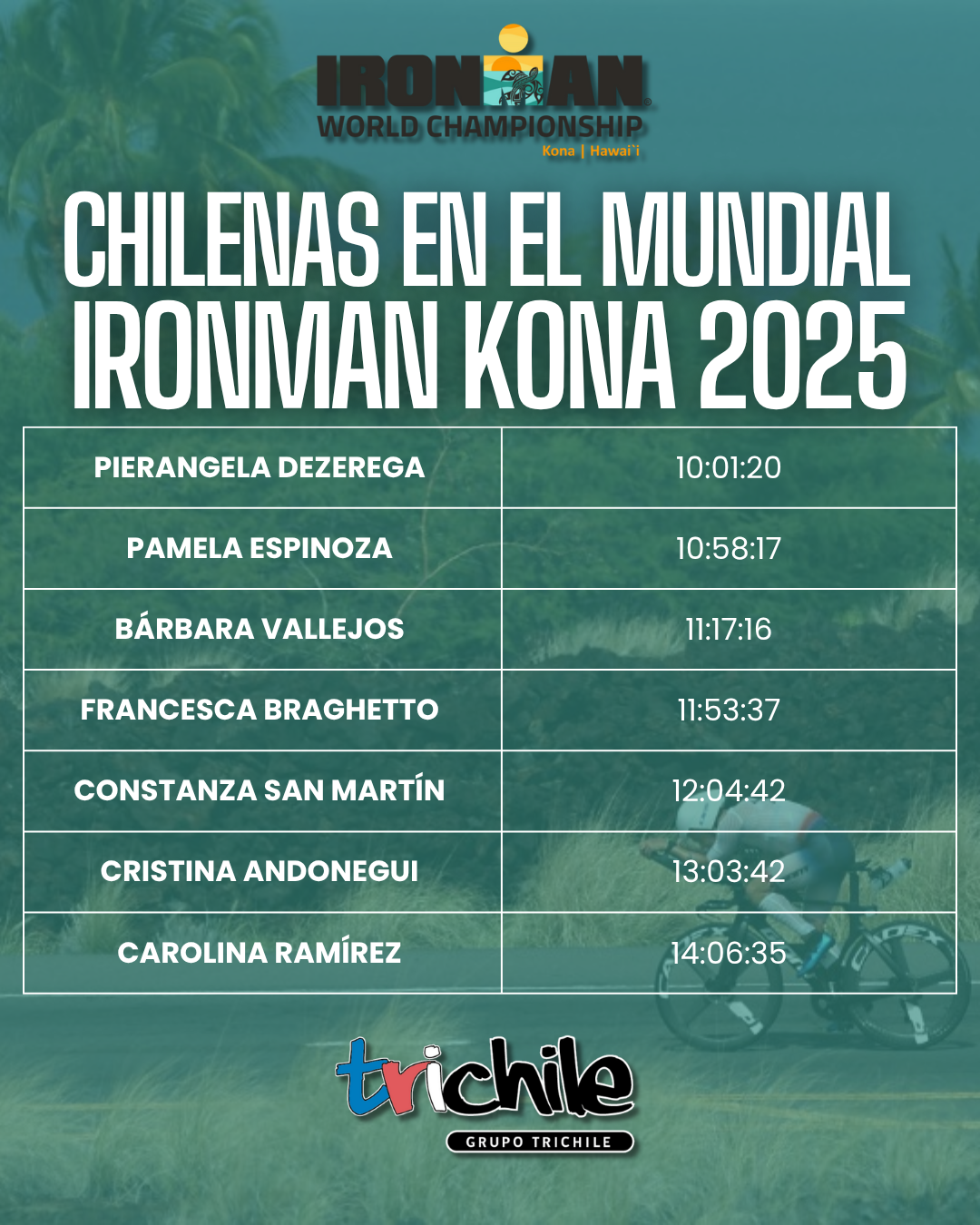 Las chilenas en Hawaii 2025, con sus tiempos, posiciones y parciales: